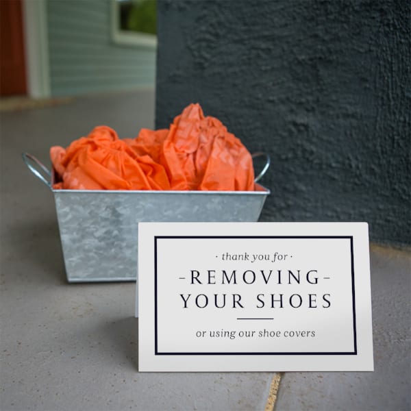 <p>A fun way to ask guests to remove their shoes, goes great with a basket of shoe covers. </p><ul><li>8 x5 </li><li>Printed on PVC</li><li>Durable</li></ul>