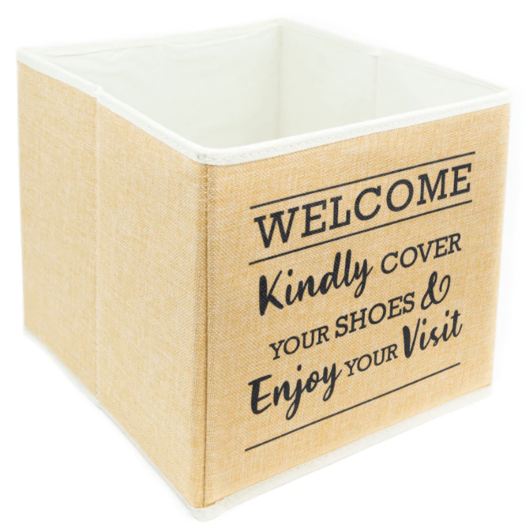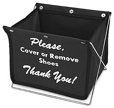 Great for Open Houses!! Especially when you may not be able to greet everyone that comes in - this bin will let potential buyers know you care about the floors in what maybe their new home. Using shoe covers will keep all the dirt and water off the floor while showing you are a true professional who goes the extra step (with your protective shoe covers on of course). When you are done for the day, the holder folds up flat for easy storage. Your clients may not even know you were there! • Heavy duty canvas material • Holder is 8"x8"x10" when open • Folds down to only 1"x11"x12"