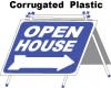 Made in the USA. All Real Estate signs are double sided printed. White letters on red background inside a giant arrow. Corrugated plastic arrow will easily fit with our 30" step stakes. New design with thick edges and rounded corners make it stronger when we ship it to you and make it last longer when you use it. NO more bent edges! Patent Pending Long, wide thick arrow is bigger than other sign arrows for showing directions easier and writing addresses and information in. Size: 17.5" high x 23.5" wide Go Green! Our signs are Plastic Code #5 and can be recycled by putting them in your home or office recycle bin. Your waste management company knows how to separate out all of your plastic products for recycling.