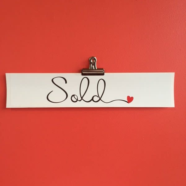 2.5" X 1.75". Gold Pin. For Sale Sign with attached, swinging Sold Sign. Brass Finish